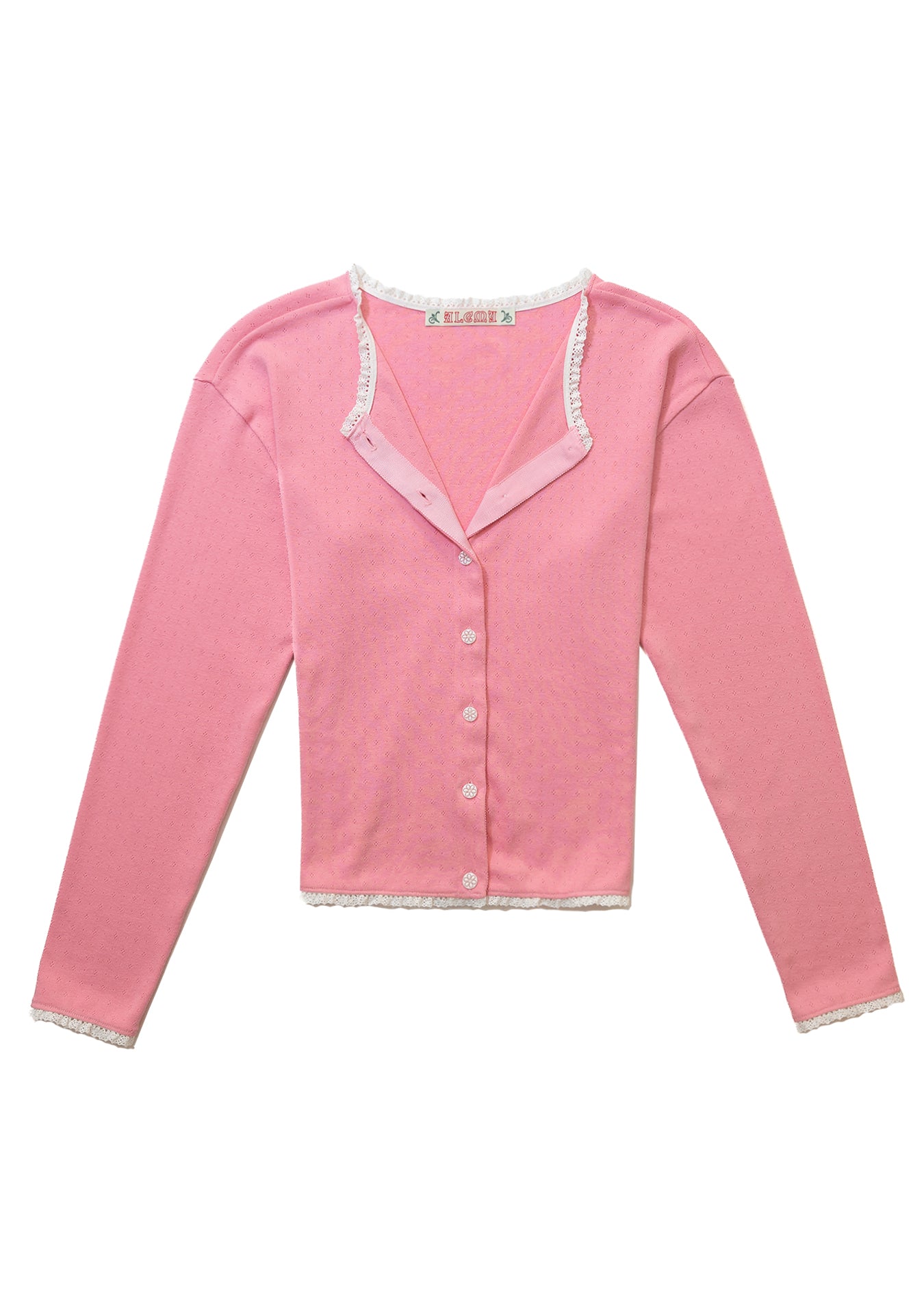 LACE TRIM EYELET CARDIGAN_PINK